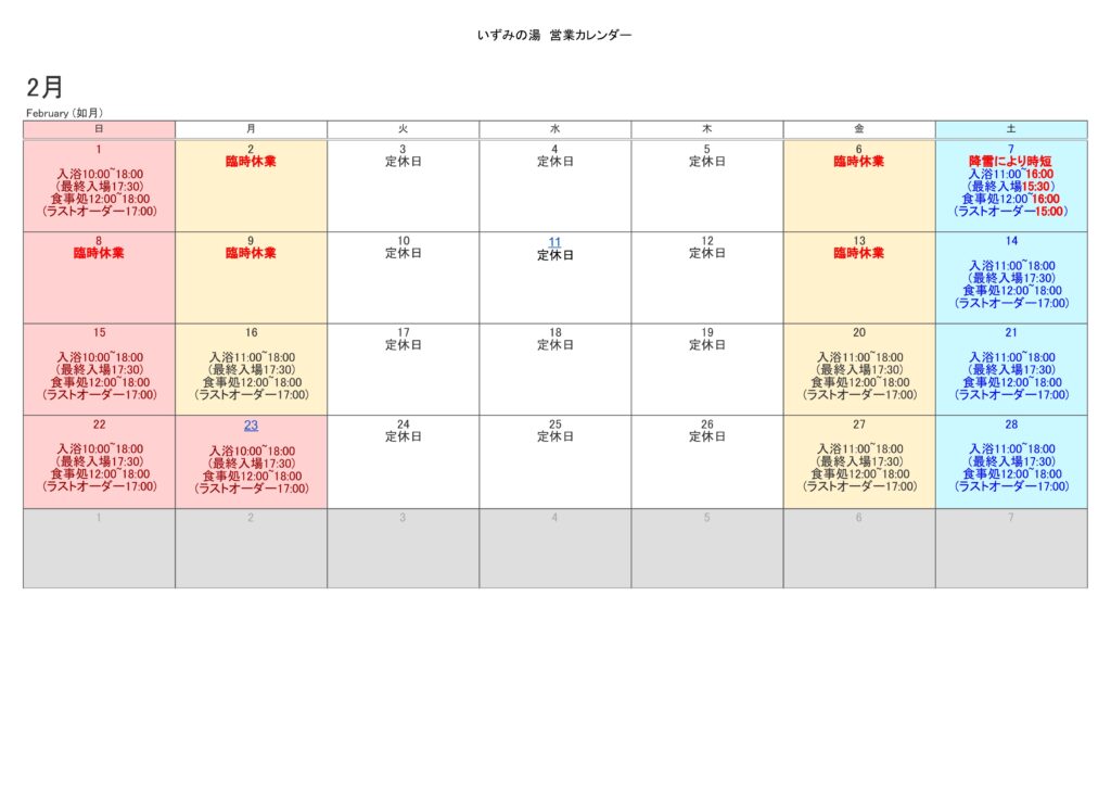 2月7日の降雪を受けて、営業予定を一部変更しております