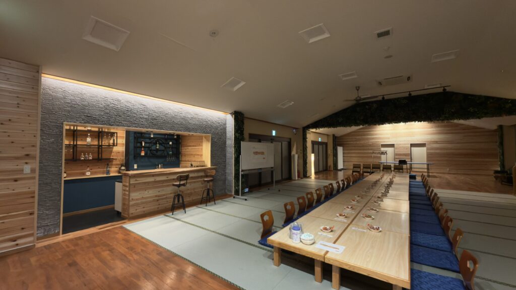 会場は完全貸切!いずみの湯休憩所と併用して最大270名まで対応可能